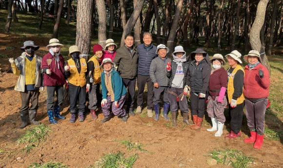 하서면은 지난 14일부터 석불산 힐링숲 가꾸기 사업으로 하서면 적십자 봉사회에서 꽃무릇 3만 5000구를 식재했다고 밝혔다.